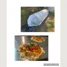 午前中は畑にトンネル作って種撒いて昼食に サラダほうれん草にルッコラ、春菊、ミックスリーフ、20日大根 トンネルで保温したら無事に冬中収穫出来るか? 何時もの肉玉ソバ、イカ天トッピング。