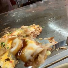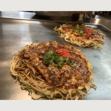 いつもの豚玉そばにイカ天トッピング やっぱりここのお好み焼きは美味い 岡山県内だと一番好きかな