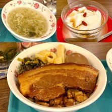 ほんっとここのルーローハンと杏仁、美味しい◡̈♥︎ ❤︎控肉飯セット セットは煮卵とスープ付き。この日のスープはのりと玉子のスープ。 ❤︎杏仁豆腐 とぅるんとした杏仁豆腐に台湾茶シロップが美味しすぎるの。タッパーで買って帰りたい。