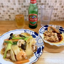 五目あんかけ焼きそば、よだれ鶏と 青島ビール小瓶と 汀さんに年始のご挨拶 昼前に投稿される今週のメニュー、週替わり定食はそこまでピンと来ないなと思ったら 五目あんかけ湯麺に「焼きそば変更できます」の注釈が 米を摂取したいところだったけどあんかけ焼きそばにまみれました よだれ鶏について一人論述問題回答をメモってしまった、汗かいたー 満足酔っ払い(アルコール激弱チョロい)な昼時間 また夜も来まーす、と挨拶も完了!
