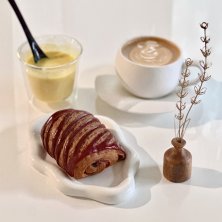 店内でスフレをいただき、以下と写真にはないパンドミとソーセージの入ったパンをお持ち帰り。 ❤︎シュー プラリネ ❤︎タルト シトロン ❤︎クロワッサン ヌテラ こちらのお店、テイクアウトしたものはケーキよりもパンの方が好みでした〜◡̈♥︎
