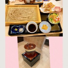 山形旅行初日のランチ❣️ やまや弥平さんでゲソ天そば(冷) それと南陽市のお酒「錦爛」(きんらん)。 錦爛おいしぃ~❣️ もっきりにたっぷりついでくれました(*´艸`) そして山形といえばゲソ天❗️🦑