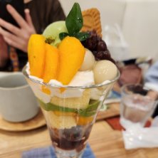 柿パフェ 今が旬 これは富有柿かな アイスとグラノーラも 美味しい〰️😁
