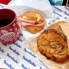 久しぶりにSUNBAKEで買えた! 早い時間に古町に行かないと買えないんだよね〜。 写真は多加水パンのチョコ味。ふわふわもちもち♪ 一人分の小さなぶどうパンも買ったんだけど、写真忘れた😅
