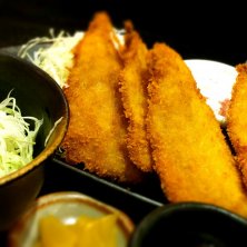 今日は、前回入荷なくフラれた「玉の屋」で、アジフライ! 冷奴、お新香、味噌汁が付いて、950円也! 気がつけば二日連続揚げ物だったので、白飯の代わりにセンキャベ! 外はカリッカリ、中身は脂が乗ってて、んまかったぁ〜♪