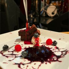 切り裂きジャックをイメージしたデザート ということで赤み強めに😅 コロナ以降初めてお店の中で「食」しました 今日は飛行機のの中で周りほとんどマスクされて無くて、まあこんな風に慣れていくのかなという感じでした