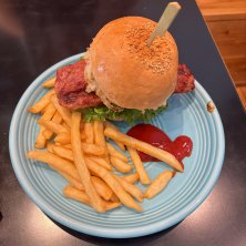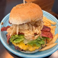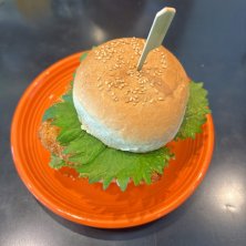 フィッシュバーガー 大きなフライに適量のタルタルソースと大葉がマッチする