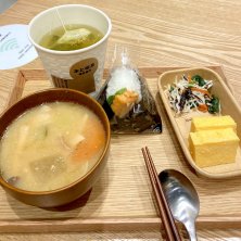 世界最大の無印良品店 この前はコーヒーと芋だったけど 今回はおにぎりと豚汁・惣菜セット まだ開店間もない10時半なのに 早すぎる昼ごはん🤣 具沢山の豚汁が美味しかったぁ✨ もちろんおにぎりも👍