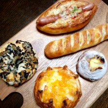 パンいろいろ 沢山買って名前忘れました。 焼売パン、ウインナーパン、レーズンとクリームチーズ、モンブラン、エッグタルト、シトラス、アップルチーズクリーム、ファーブルトン…そんな感じ。
