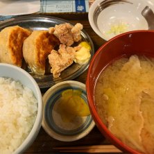 餃子とザンギの定食 豚汁が大きい!