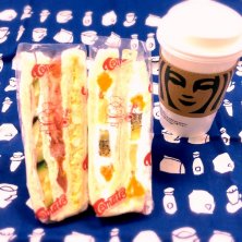 年度末はお昼休みがちゃんと取れるかビミョーだったので、 朝、サンドイッチTOMATO🍅で買ってきたサンドイッチとスタバのティーラテをいただきました🥪 しっとりと少し味の染みたパンが美味しいです☺