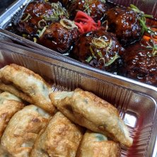 テイクアウト昼ご飯 餃子 肉団子の甘酢 今日は 子供達を連れて 実家に🚙💨 テイクアウトして 仏壇前で 息子達と食べました ここの餃子は 揚げ焼きみたいな感じで タレが 独特❤ すきです。 肉団子は 肉 0%(笑) 野菜と モチモチした食感の 不思議な感じですが 甘酢の味が好きで 私と母の定番でした🍴 久しぶりに食べたけど 美味しかった〜 母と食べた以来かな。 寒かったけど 窓 少しづつ開けっ放して お寺の墓参り 歩いて行き いとこ夫婦2組にたまたま 会えて 楽しかった🍀