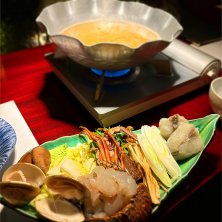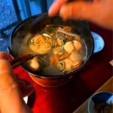 朝ごはんのごまだし海鮮汁のお味噌をとく彼