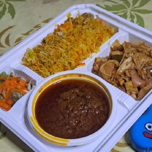 昨日(10月24日(金))の昼御飯 その①-1 【UberEats/新横浜 フジビリヤニ】 ①Bミックスセット 1,490円 カレー:マトンLittleHot +250円 カレー1品、インド風やきそば、ビリヤニ、ドリンク♪ カレーはチキンや野菜だと追加料金無し♪ ビリヤニには1口大のスパイシーチキン2個♪ 美味しかったです♪ LittleHotだとちょっと物足りない😔