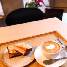 昨日のカフェも住人にとってこんなところに⁉️なんだけれど、こちらも どうしてこんなところに⁉️出来たカフェ。今日もうランチタイムも終わりの時間帯。週末に座れず平日ならばどうだろうと今日来てみた。 🍞クロックムッシュ ハーフサイズ ☕️カプチーノ 軽食に丁度良いクロックムッシュ✨他にはケーキも数種類あるみたい。フードメニューは絞られていて丁寧に提供された。 今日は仕事終わりの未明から起きてもなお愛の不時着みてた。瞼が腫れていてやばい。でもまぁいいや、オバハンの顔見てる人なんていない