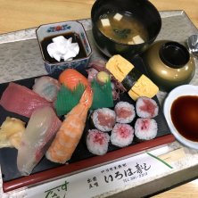 *上にぎり ¥2,200 ♥︎ランチサービス(うどんorそば,味噌汁,デザート,コーヒーor紅茶付き) 一番鯵の握りが美味しかったです(pq´v`*)♬ ランチタイムサービスが良すぎます˚✧₊⁎