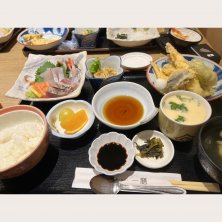 お昼はてんぷら御膳 冬用タイヤに交換中、近くのお店でお昼ごはんです 天ぷら山盛り! 海老2尾、魚切り身、ごぼう、エリンギ、玉ねぎ、かぼちゃ、さつまいも、いんげん、なす これにあらめの炊いたの、茶碗蒸し、すまし汁、ご飯とお漬物がついてました お腹いっぱいです