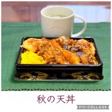 こんばんは! お昼ご飯は 南部市場で購入したお弁当を 自宅でいただきました。 ・秋の天丼 ホントの名前は確か 「秋のナンチャラ天丼」だったのですが ナンチャラの部分が思い出せません(笑) 舞茸やサツマイモ、ナス、 白身魚、海老、などなど。 とっても美味しかった。