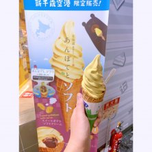 日曜日のお出かけ🎶🚗💨🎶 調子が悪いから家にいても、気分が落ち込むので💦気晴らしに子ども達と新千歳空港に遊びに行って来ました✈️ 旦那さんだけお留守番です たくさん歩いて、疲れたのでソフトクリーム🍦食べました 千歳空港限定わかさいもあんぽてとソフトクリーム🍦 中には餡が入って冷たくて美味しいかったです