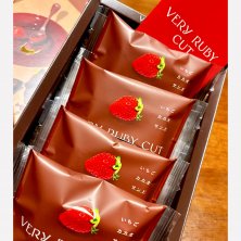 東京都港区 品川駅の改札内、エキュート品川の中に有る洋菓子の店、Very Ruby CutのVery Ruby Cut(商品名)。 周りをクッキーで囲み、その上にホイップショコラ、更にその上にとろっと隠した果実や木の実のコンフィチュールを中に入れた6種類の味のショコラを乗せたこの店の看板商品です。ショコラの色の味は、黄緑色(ピスタチオ)、赤(ラズベリー)、濃い黄色(オレンジレモン)、薄い黄色(アップル)、桃色(ストロベリー)と水色(カシスブルーベリー)となっています。母の日用に買いました。