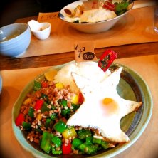 ガパオライスセット 780円に大山鶏のカオマンガイセット 700円也