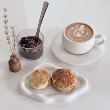 ───ꕤ𝓶𝓸𝓻𝓷𝓲𝓷𝓰ꕤ─── Cha tea ꕤスコーン/プレーン ꕤスコーン/紅茶 ほかほかでざくざく。 甘さ控えめで好き⸜♥︎⸝ 𓅫𓂃𖥧𖥧  ̄ ̄ ̄ ̄ ̄ ̄ ̄ ̄ ̄ ̄ ̄