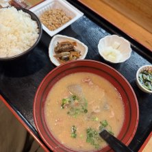 豚汁定食小と小鉢 小鉢はあのー、アレ、昆布かと思ったらなんかの菜葉の生姜煮、美味しい 初見にして何かとてつもない親近感を抱いたとある店の店主が教えてくれた課題店 漫才の二幕目終わって散歩してきます、と ちょうどいい距離感 お味噌はうちから結構近い老舗の佐野みそで 特製ブレンドを作ってもらってるようで こちらも親近感湧いちゃうなぁ 聞いた通り外人さんとお手伝い日本人おばちゃんがやってて、店内はギリ汚くないごちゃごちゃさ 豚汁くずくずして美味しい 最後まで飽きずはふはふしながら食べちゃう