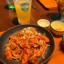 《1月18日(水)のディナー》 今日は先輩にお誘いいただき「中澤卓也」のライブにご招待いただきました✌️ 初めて降り立った天空橋。 ライブの前に腹ごしらえです😊♫ オススメのクラフトビールと山盛りサラダ。 キノコのアヒージョとパスタ🍝 2月に一緒に行く北海道旅行の話で盛り上がり、その後のライブもとても楽しくて充実した一日になりました♡