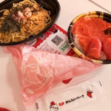 明太子おにぎりと明太子豚まん。 明太子おにぎりうま〜!