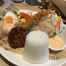 千葉県は鴨川のビーチカフェにて。 グリーンカレーソースのハンバーグ 8月末までの期間限定だったので 注文したらソースがとっても美味しい!! 他のメニューも食べてみたい❣️ あっという間にペロリご馳走さまでした (^з^)-☆