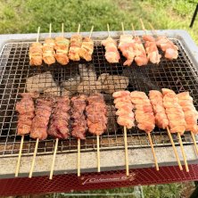キャンプ場にて ローストビーフ 豚肉のネギダレ