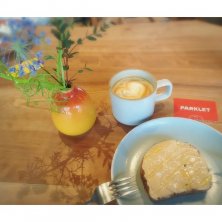 2/25 パン屋さんでモーニング🍴 Parklet bakeryへ🎵 悩んだ挙げ句、 店員さんのアドバイスを参考に・・・ 🔸バニラカシューナッツバタートースト 🔸カフェラテ ☕️ 蜂蜜🍯+坊津の塩 甘い+塩味で、美味しかったです💕 他のパンも気になるので、 またお邪魔したいと思います😊