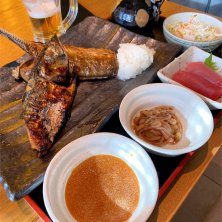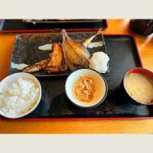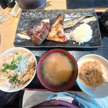 本日の一夜干しごちそう三種 ほっけ、さんま、まぐろの焼き魚 ご飯は炊き込みご飯に変えました🍚 1月20日