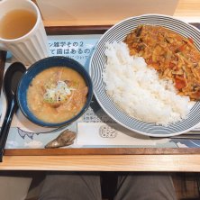 モツカレーと豚汁のセット! カレーにもかんずりがたっぷり入ってるな!? 美味しい〜😋 そして夕食も豚汁だったというオチ
