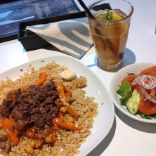 高田馬場の路地に迷い込んでみたら、ウズベキスタン料理のお店に入ってしまったので、オススメのプロフセットとアイスティーを🥤 シンプルな味付けで、なんだかアフター万博な気分になりました🇺🇿