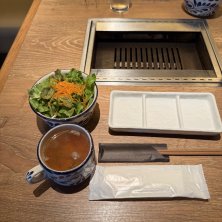 息子が焼肉食べたいというので渋谷パルコの上のキンタンへ食べに来ました。相変わらずサラダとスープがおかわり自由なのが嬉しいよね。またサラダを5〜6回おかわりしちゃったよ😜 和牛切り落としのランチセットで😋