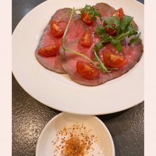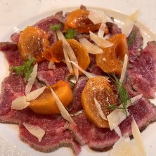 あか牛と柿のカルパッチョ🐮 噛むほどに旨み広がる熊本産赤身肉と甘さたっぷりの柿が抜群に合いました✨