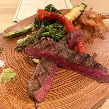 クリミ、焼き野菜盛り合わせ🐮🥦 今年オープンした、熊本の銘柄牛あか牛を頂けるお店に行ってきました✋ いろんな部位のお肉を選べますが今回選んだのは腕にある赤身肉、ミディアムレアで頂きました☝️ 適度な弾力感でほんのりと甘みもあり、赤身肉好きにはたまりません😁