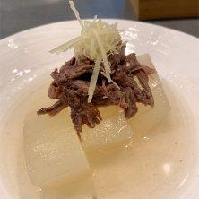 あか牛テール肉と冬瓜の冷やし煮 今日は冬瓜の日ということで登場したおすすめメニューです✋ ほんのりほろ苦な冬瓜とテール肉の旨み、透き通った煮汁もめちゃ旨です😁