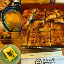 2022.5.22 昼 うなめしセット(半身) (鹿児島県産鰻蒲焼き、特製山椒とうふ、自家製ぬか漬けと甲南漬、焼きキモ入りの赤出汁、出汁茶漬けセット(刻みネギ・海苔・あられ)、釜炊きごはん(おかわり自由)) バイ貝の煮付 行こうとしたお店が二軒とも定休日で、まさかの鰻。なるべく食べないようにしていたので何年か振り。バイ貝も美味しかった。ごはんは3/4私が食べた。 バイ貝の殻をひとつずつお土産に。後日洗って外に干していたら、蟻がたくさん来たらしい(うちは室内干しだったので大丈夫)。