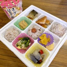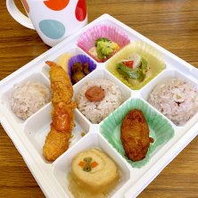 お昼ご飯 いただきます。 ゆっくり噛んで食べよう。