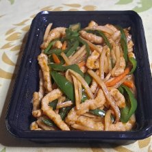 昨日(1月3日(土))の晩御飯 その③ 【UberEats/六角橋 知味軒】 ③豚肉とピーマンの細切り炒め 1,180円 豚肉、ピーマン、たけのこ、人参、玉ねぎ、ニンニク♪ 美味しかったです♪