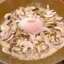 生マッシュルームがたくさん入ったカルボナーラ。美味い。