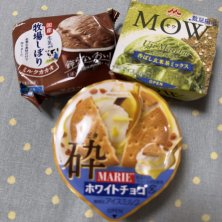 アイス〜 販売終了品につき、ひとつ50円だった‼️ ので3つ買っちゃった *砕~マリーホワイトチョコ~ *牧場しぼり~ミルクカカオ~ *Mow 宇治抹茶 ~こがし玄米茶ミックス~ 大事に食〜べよっ 同じケースにハーゲンダッツもあったけど、それはそのまんまだった