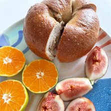あさごぱん 息子が選んだベーグル さんぶんこして少しトーストしてたべた☺️