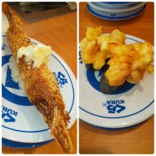 名探偵コナンのびっくらポンがやりたくて、くら寿司へ😁 特盛フェア中のくら寿司 特盛たら白子天ぷら軍艦 特大有頭海老フライ握り 220円でこの海老フライは食べ応えあり💖