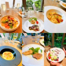 PASTA LUNCH@1,000円(税込) 15品目のチョップドサラダ ピスタチオのフラン 自家製チーズフォカッチャ 鶏肉と枝豆のアラビアータトマトソース ここはいつも丁寧で美味しい