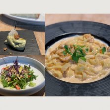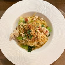 PASTA LUNCH@1,000円(税込) 15品目のチョップドサラダ ピスタチオのフラン 自家製チーズフォカッチャ パスタは鶏ひき肉とチンゲン菜のオイルソースをチョイス ピスタチオのフランめちゃくちゃ美味しい、パスタも丁寧でとても美味しい、というか全部美味しい◎