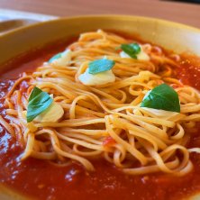 麺は平打ち生麺。 もちもちで、チーズもたっぷり。
