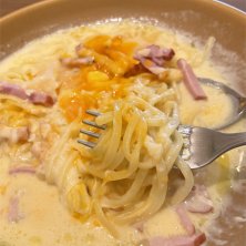 とろける7種のチーズのカルボ チーズ好きしか食べてはいけないパスタ、 また食べてしまった〜 前よりベーコンやチーズ(麺も?)若干少なめ感否めないけど、美味しいからいいか。